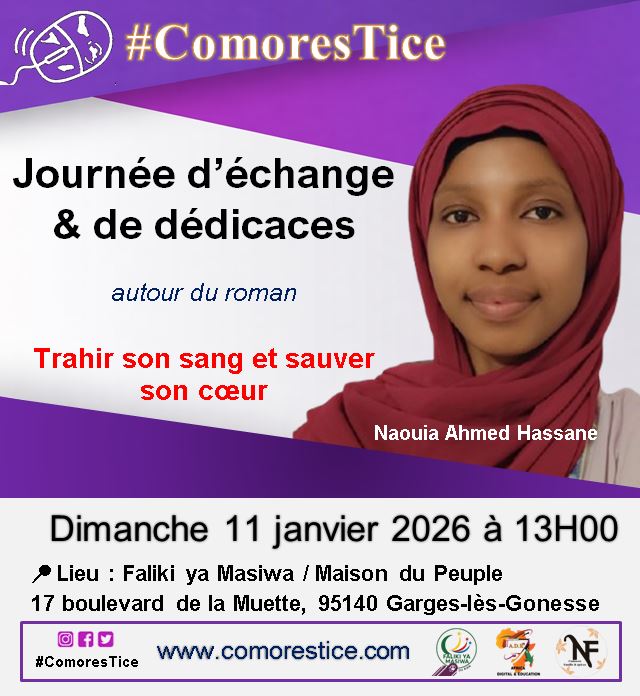 Naouia Ahmed Hassane est la toute première auteure de la maison d'édition #ComoresTice , une étape symbolique et forte que nous serions honorés de partager avec vous.